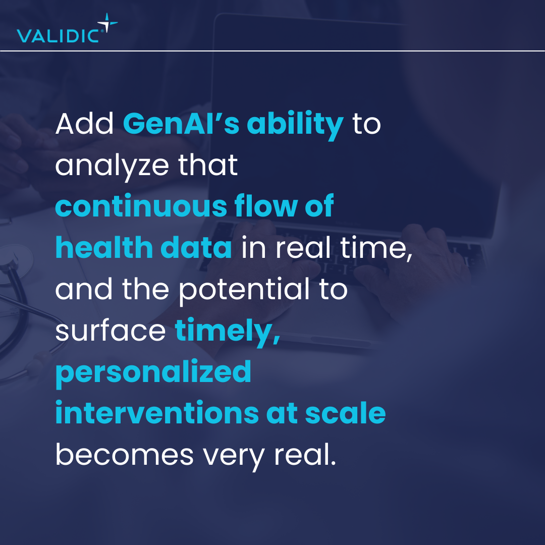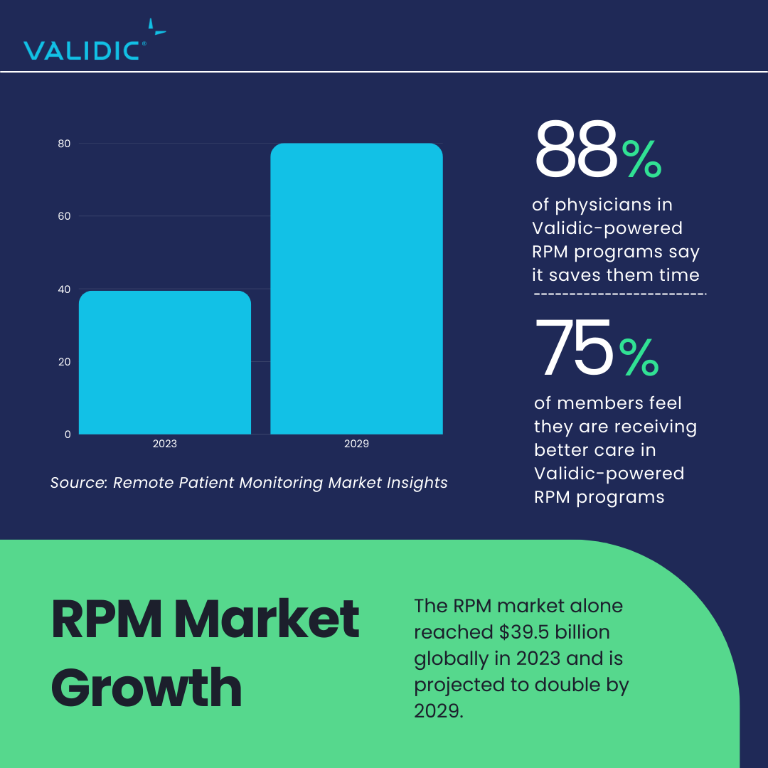 At Validic, we believe that “what’s next” is personalized, proactive, and powered by data that connects the dots between episodic encounters. That’s why the intersection of remote patient management (RPM) and GenAI is so compelling. On their own, each technology is powerful. Together, they represent a future-ready model of care. The RPM market alone reached $39.5 billion globally in 2023 and is projected to double by 2029. Add GenAI’s ability to analyze that continuous flow of health data in real time, and the potential to surface timely, personalized interventions at scale becomes very real.