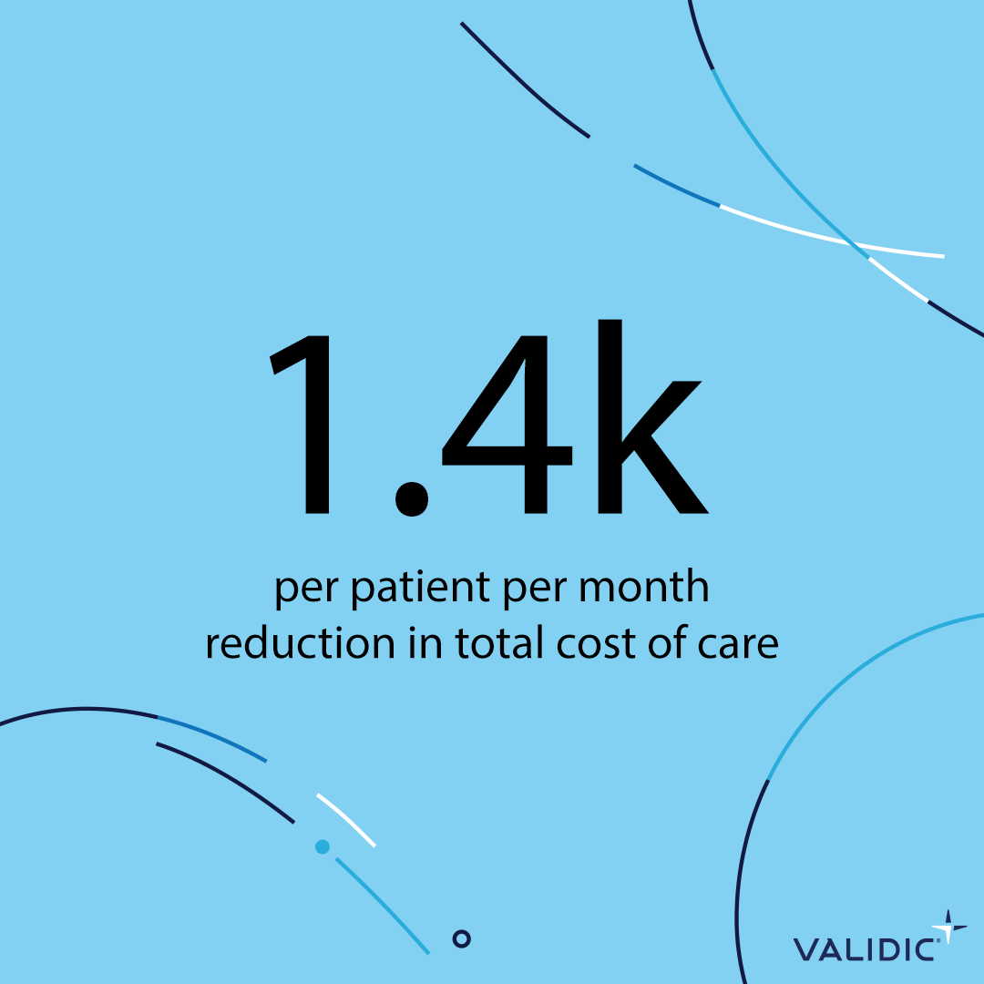 One client reported a $1,400 per patient per month reduction in total cost of care for patients enrolled in Validic’s intervention program.