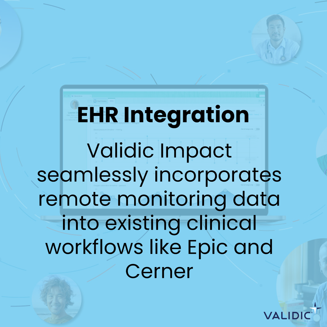 EHR Integration: Validic Impact seamlessly incorporates remote monitoring data into existing clinical workflows like Epic and Cerner, eliminating documentation burdens and ensuring continuity of care.